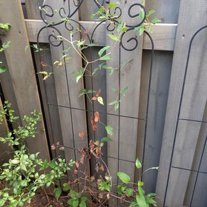 - Maybe we should attach/build our own trellis to that wooden fence and get rid of our metal one?